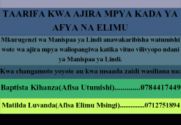 • TANGAZO LA UKARIBISHO WA WATUMISHI WA AJIRA MPYA KATIKA KADA YA ELIMU NA AFYA.
